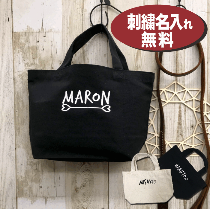 名入れ バッグ 刺しゅう トート 小さめ 軽い かわいい 名入り 刺繍 キャンバス 黒 軽量 幼稚園 保育園 卒 園 記念 品 小学生 学校 子ども 小さめ 運動会景品 ランチ 散歩 記念 卒対 部活 引退 記念品 祝い バック bag ミニ 出産祝い