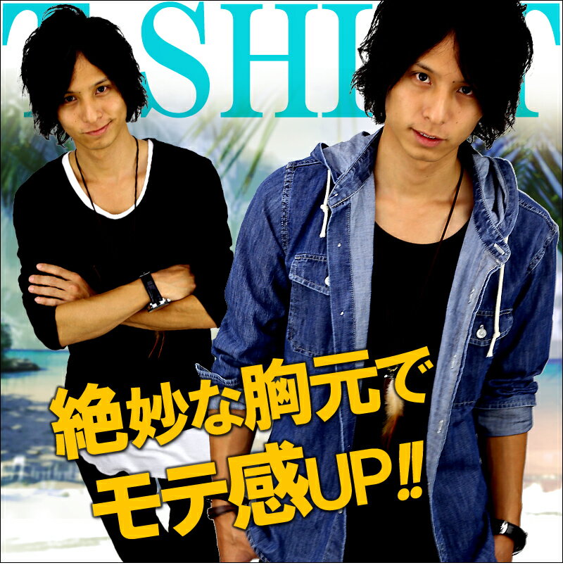 tシャツ 七分袖 メンズ vネック uネック 深vネック 無地 カットソー インナー 黒 ブラック ネイビー タイト キレイめ お兄系 キレカジ アメカジ トップス 7分袖 大きいサイズ コットン 綿 ポリエステル アクセONE ウェア 【あす楽】【f29】 新作 服 夏 夏服 夏物 夏用