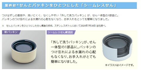 シンプルで使いやすいマイボトル シームレスせん 「外して洗うパッキン」が、せん一体型の1部品に。