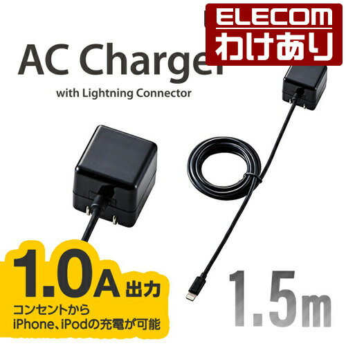 ロジテック AC充電器 Lightningケーブル一体型 長寿命 1A ブラック 1.5m:LPA-ACLAC155BK【税込3300円以上で送料無料】[訳あり][Logitec ロジテック:エレコムわけありショップ][直営]
