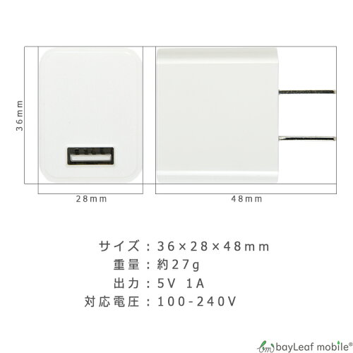 【商品情報】 商品名:1口充電アダプタ 入力: AC100-240V 50/60Hz 出力: DC5V/1A カラー:白 規格準拠: PSE認証付 ※初期不良は交換いたします。